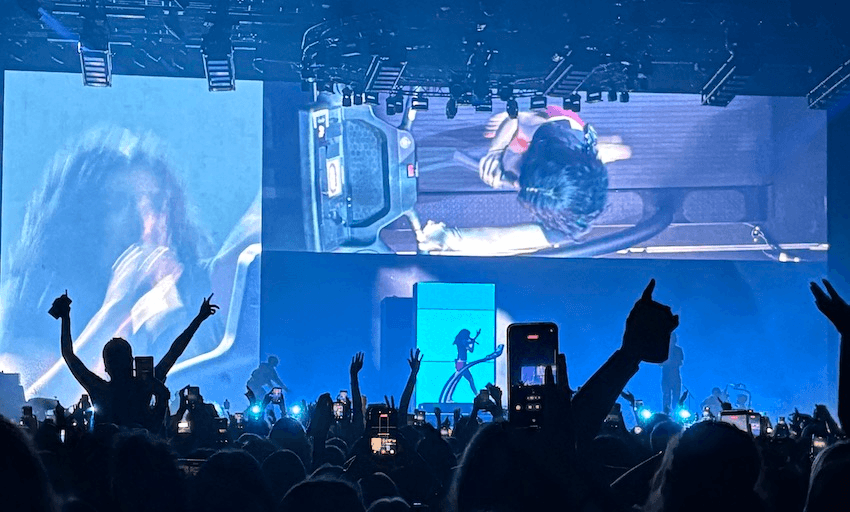 Returning to Ōtautahi for the first time since she headlined Electric Avenue in 2023, Lorde’s Ultrasound tour was the polar opposite of the sun-soaked Solar Power set, a sublime techno-frenzy of dancing, lasers, monolithic speaker stacks and screens inside screens inside screens. The barefoot woman who once threw her cellular device in the water has now firmly embraced the mechanics of the modern world, becoming a buzzy warped visualiser for ‘Shapeshifter’, glitching out in ‘Perfect Places’, inverting colours like an old Macbook Photobooth setting on the staggering video screen.