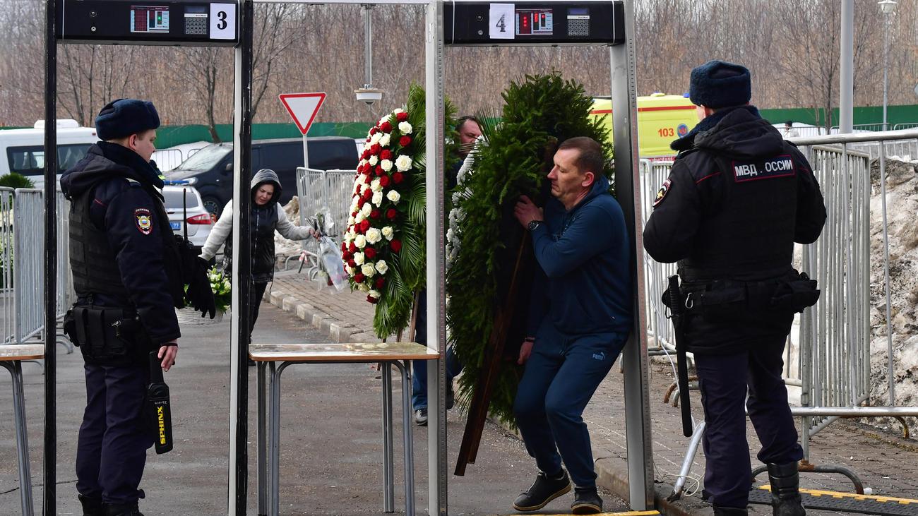 Schon seit Stunden haben sich in dem Moskauer Bezirk Marjino Tausende Menschen versammelt, um von dem langjährigen Oppositionsführer Abschied zu nehmen. Sie gehen ein hohes Risiko ein, bei Trauerkundgebungen kurz nach Nawalnys Tod waren zuletzt Hunderte Menschen verhaftet worden.